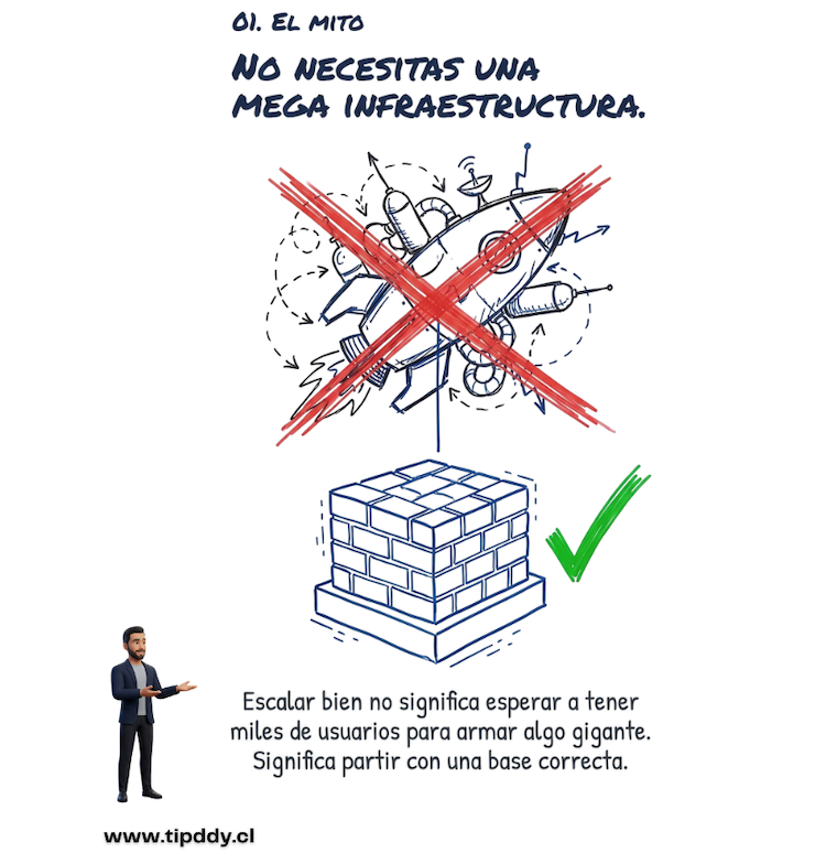 No se trata de montar una solución gigante para miles de usuarios desde el primer día. Se trata de evitar decisiones técnicas que después se transforman en cuellos de botella, puntos únicos de falla o costos innecesarios.